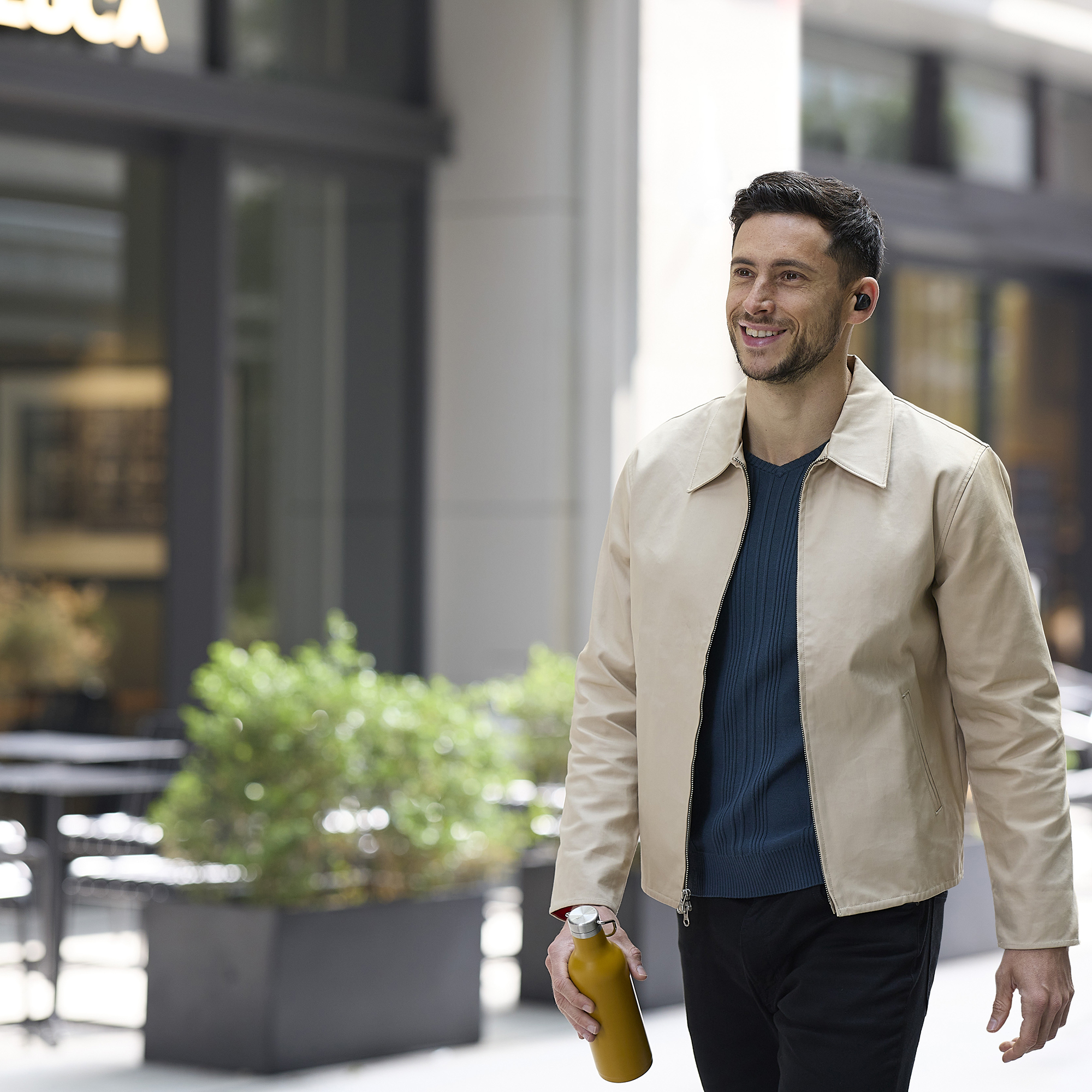 Низкопрофильный и сбалансированный дизайн обеспечивает комфорт даже при длительном ношении. Наушники удобно и надёжно сидят, оставаясь на месте во время движения. Класс влагозащиты IPX4 надежно защищает устройство от дождя и пота.